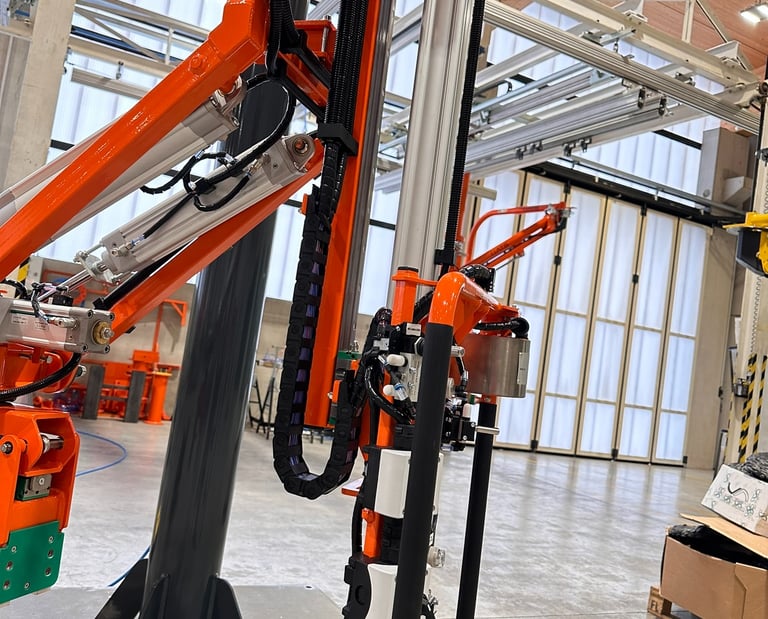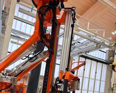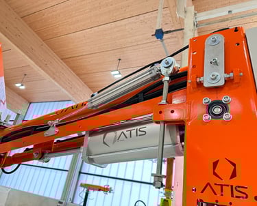 ATISLINEAR: Overhead trolley-mounted manipulators on tracks, ideal for compact spaces.